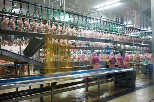 (中央媒體采訪團參觀屠宰加工廠)